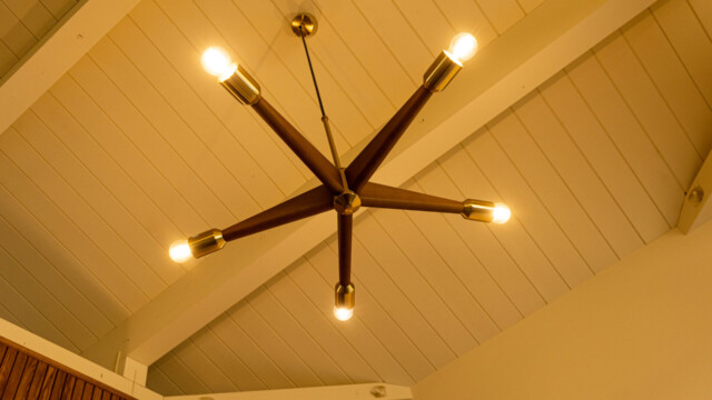 - ミッドセンチュリー家具が映える木の床と生成りのホワイトの壁