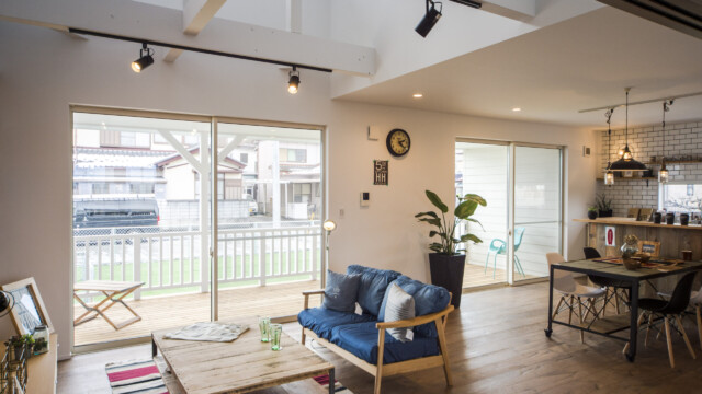 - 間取り:土間スペース、ガレージと直結した収納動線、吹き抜けリビング